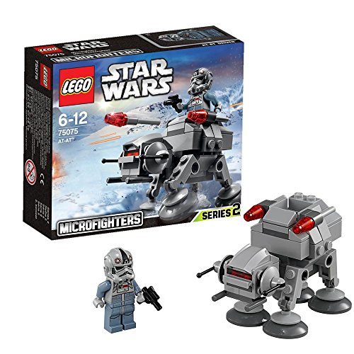 Advance on the Rebel Hoth base with the awesome LEGO Star Wars 75075 AT-AT microfighter.,This small-scale version of the real Imperial Walker features a posable head and legs, 2 flick missiles and even a mini cockpit for the AT-AT Driver to sit in.,This mean microfighter is going to take some stopping!,Includes an AT-AT Driver with a blaster pistol.,Ages 6 - 12.