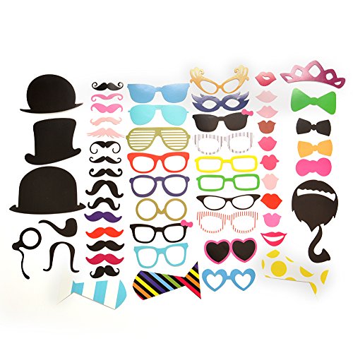 Miryo-58pcs Juego de Accesorios de Photocalls Máscaras Disfraces para Boda Festival Fiesta DIY bigote gafas boca corbata Familia Navidad cumpleaños por 6.78€