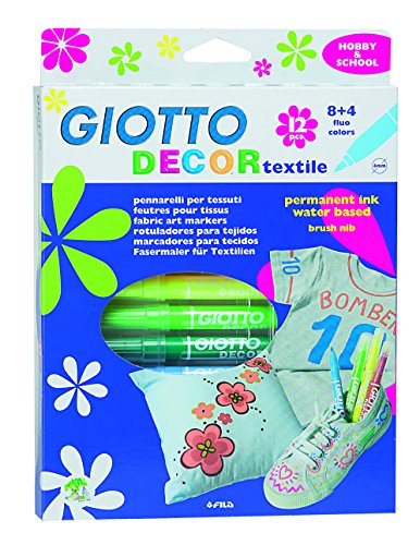 Giotto Decor Textile - Estuche 12 rotuladores decorativos para tejidos, tinta base agua, resistentes a lavados hasta 40º [Material de oficina]