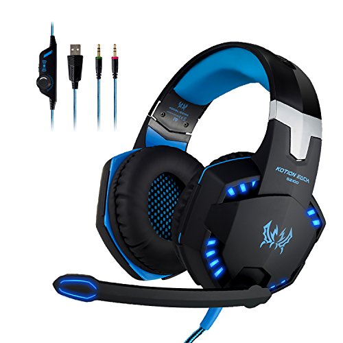 easysmx Each G2100 blau Kopfhörer Stereo mit Funktion-Erschütterungs Stella Reithelm unheimlich Headset für Gaming Spieler Kopfhörer mit Stereo Bass Sound LED Lampe für PC Gaming [CE]