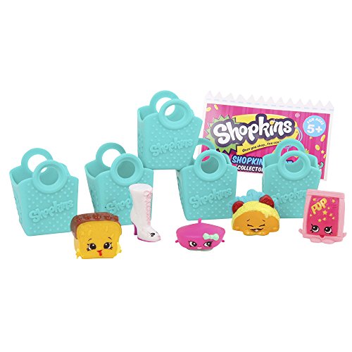Gioca a fare la spesa; gli Shopkins sono dei simpatici personaggi che vivono nel mondo dello shopping,Allarga la tua collezione con i set da 5 personaggi: divertiti a scoprire lo Shopkins nascosto,Personaggi con colorazioni e dettagli curati in ogni minimo particolare,Fabbricati in gomma rigida, hanno un'altezza variabile da 3 a 4 cm,Inclusi nella confezione: 5 Shopkins e 5 shopper bag