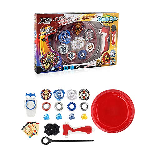 Paquete de batalla, deja que tengas el giroscopio más potente,Este estallido bey también recuerda el recuerdo de la infancia para adultos, solo juega con tu familia o amigos,Es un regalo perfecto para niños mayores de 6 años,Launcher y Beyblade se pueden combinar en cualquier combinación,Los lanzadores más fuertes y el conjunto de adhesivos