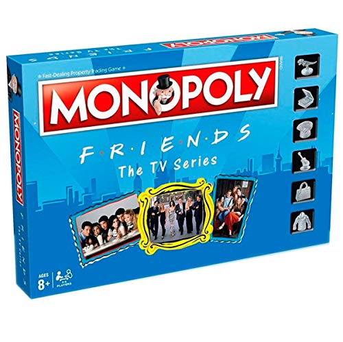 Edición del clásico juego de estrategia, Monopoly, inspirada en la mítica serie de televisión de los años 90, Friends. La edición tiene un fantástico diseño, basado en los diferentes personajes, objetos y escenarios de la serie de televisión. En el interior encontrarás todos los accesorios para comenzar a jugar, como el tablero, las fichas, los distintos peones y el dinero para jugar como banca. De 2 a 6 jugadores. Edición en castellano. Recomendado a partir de 8 años.