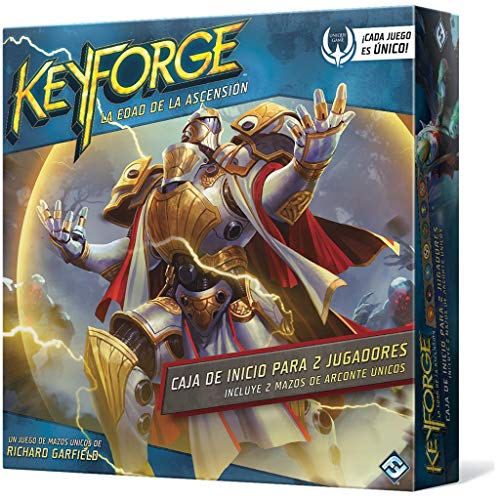 Caja de inicio de KeyForge: la Edad de la Ascensión¡Entra en la Edad de la Ascensión con la segunda serie de mazos de KeyForge!¡Nunca verás dos mazos iguales! En este emocionante juego, dos jugadores compiten por forjar llaves con las que abrir las cámaras ocultas del Crisol. Gracias a una increíble variedad de criaturas, artefactos y habilidades, cada mazo es completamente único, ¡y cada batalla es un evento irrepetible!La Edad de la Ascensión incluye 204 cartas nuevas que generan toda una gama de mazos únicos para descubrir, explorar y dominar. Esta Caja de inicio contiene dos mazos de Arconte completamente únicos, cada uno de los cuales ofrece una combinación de cartas que no encontrarás en ninguno de los otros mazos que existen. Incluye todo lo que dos jugadores necesitan para empezar a jugar a KeyForge.CONTENIDO2 mazos de Arconte únicos,6 fichas de Llave,26 fichas de Æmbar,24 fichas de Daño,44 fichas de Poder y de Aturdimiento,2 cartas de Registro de cadenas y 2 marcadores de Registro de cadenas,1 reglamento de inicio rápido y 2 tapetes tipo póster.